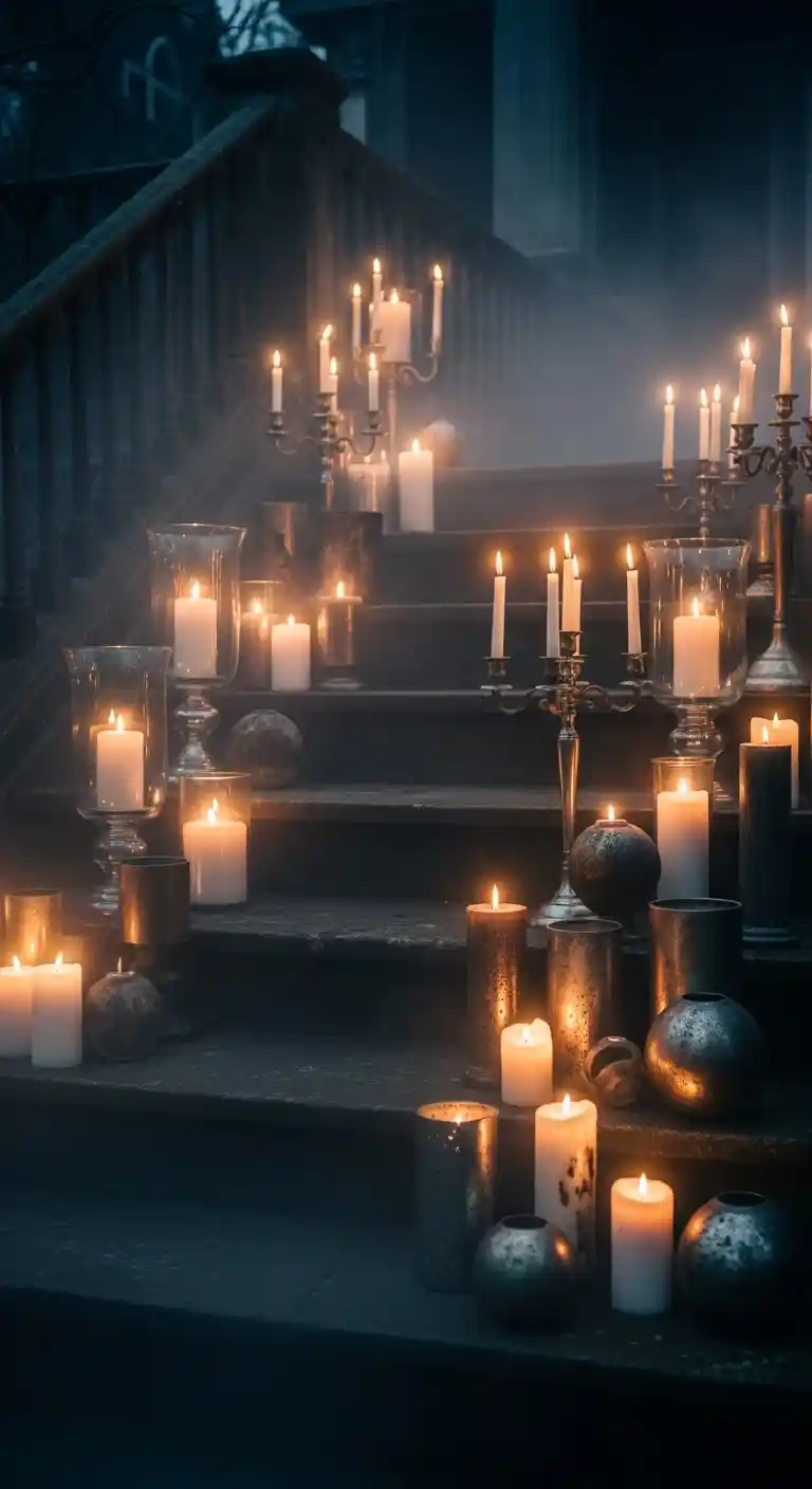 Whether you have a grand entryway or a small patio, this aesthetic allows you to create a hauntingly beautiful scene that feels intentional, stylish, and photo-ready.