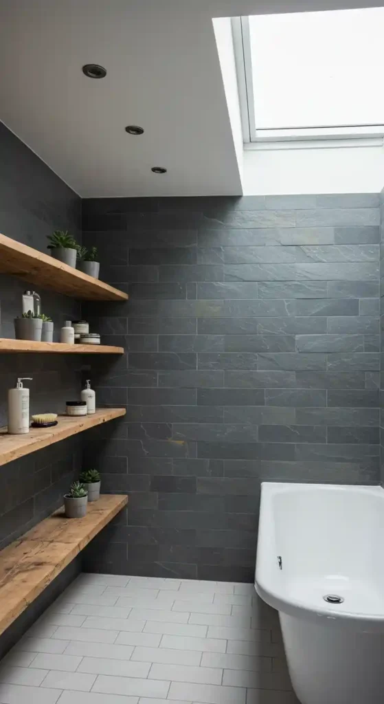 Slate’s earthy tones pair beautifully with the clean lines of subway tiles, creating a balanced aesthetic.