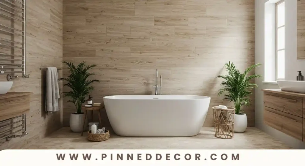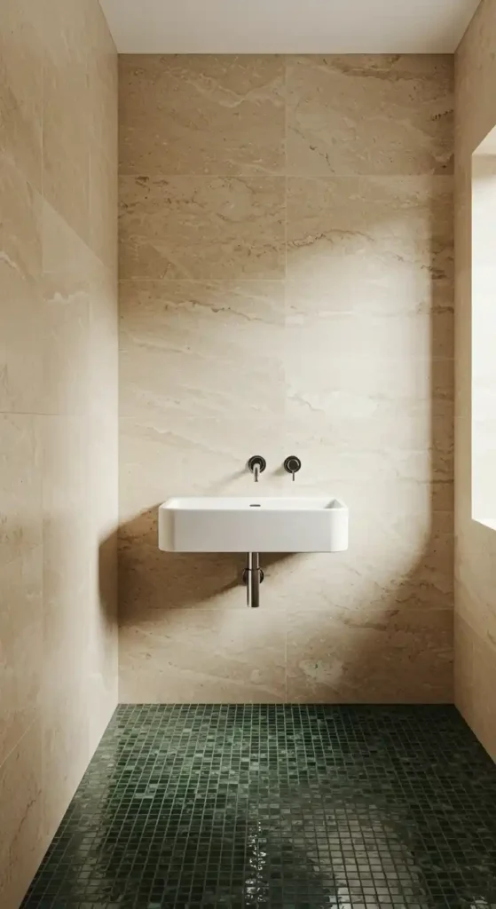 This bathroom tiles combination feels organic and serene, ideal for nature-inspired bathrooms.