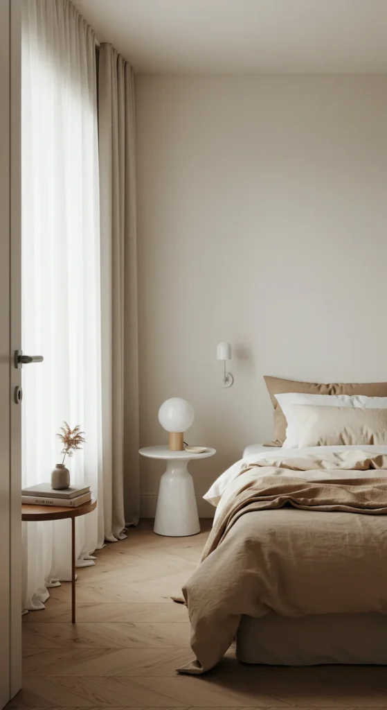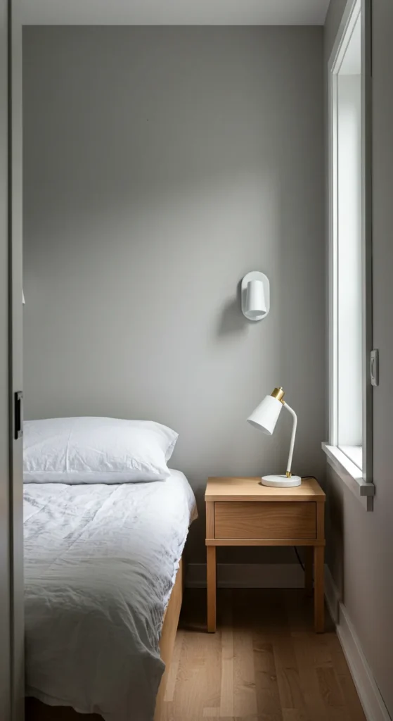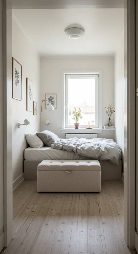 Light, neutral colors like white, soft gray, or beige make small bedrooms feel larger and airier.
