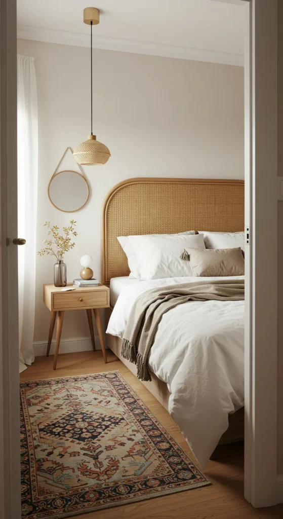 This tiny bedroom idea adds intimacy and style without bulky dividers or furniture.