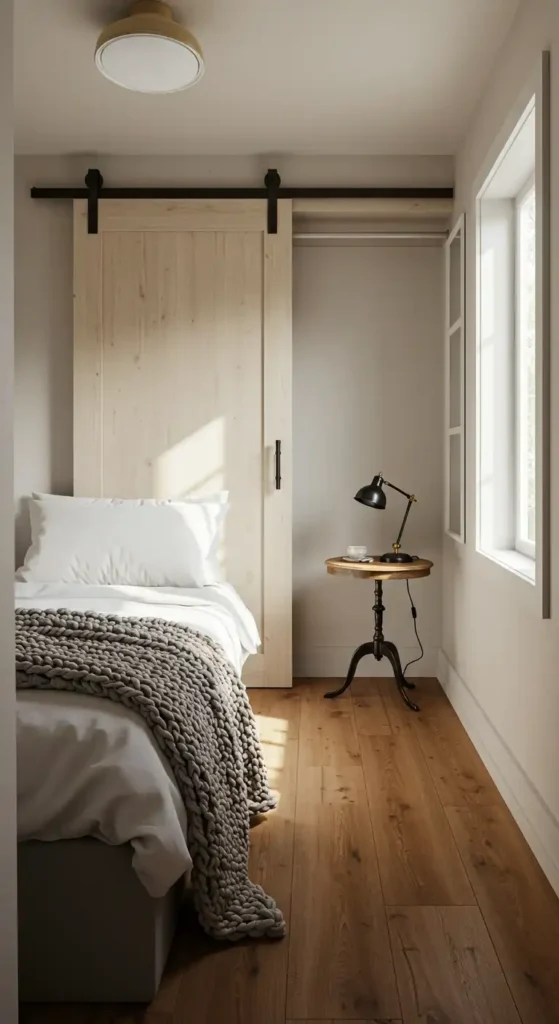 Replace a traditional closet door with a sliding barn door to save space and add rustic charm.