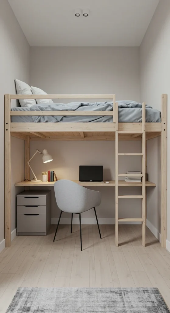 This setup is perfect for teens or small apartments needing a workspace without sacrificing sleep space.