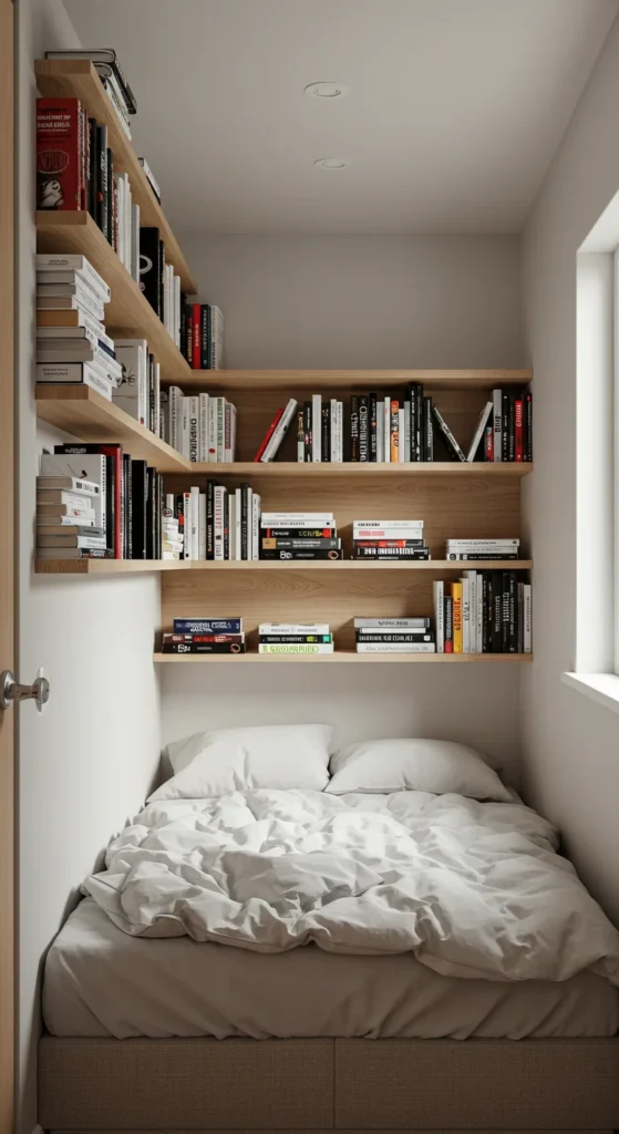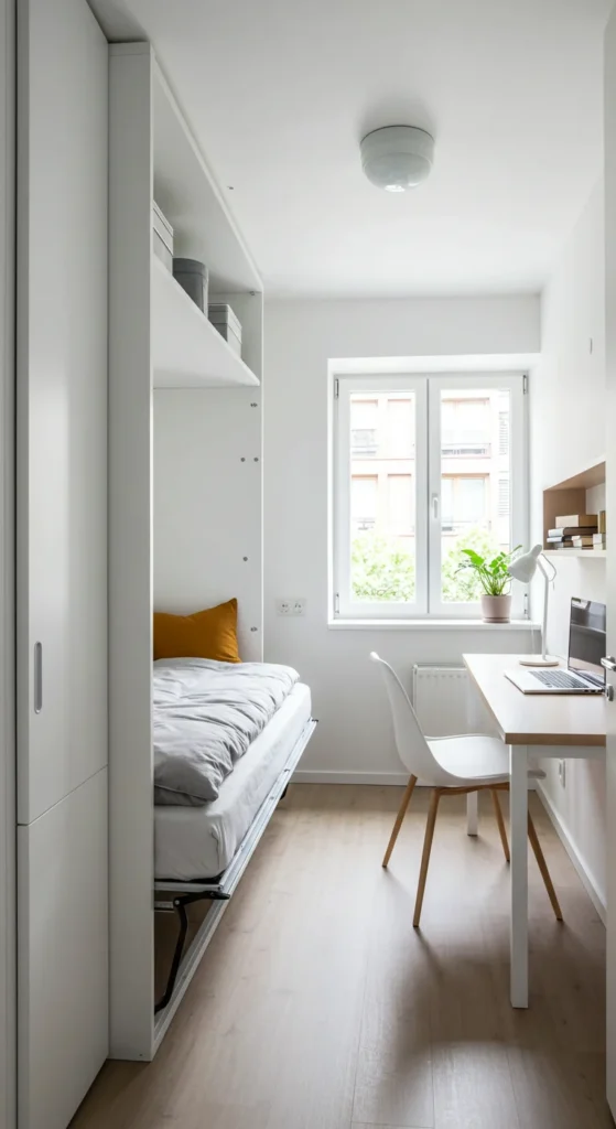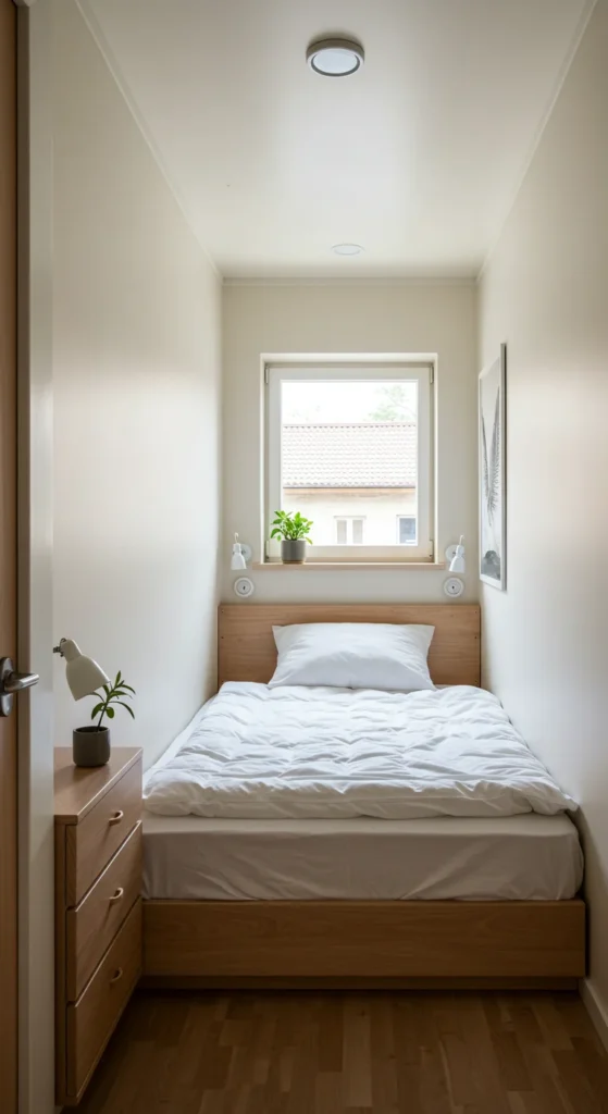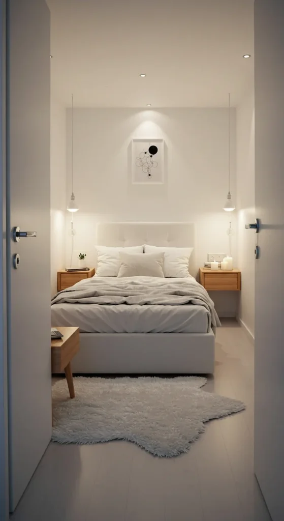 It’s a practical, modern way to enhance a tiny bedroom’s functionality.