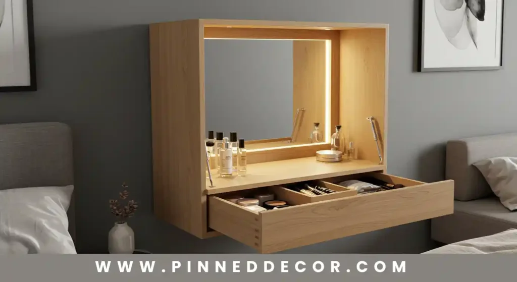 Fold it away to reclaim space when not in use, adding a small shelf for cosmetics.