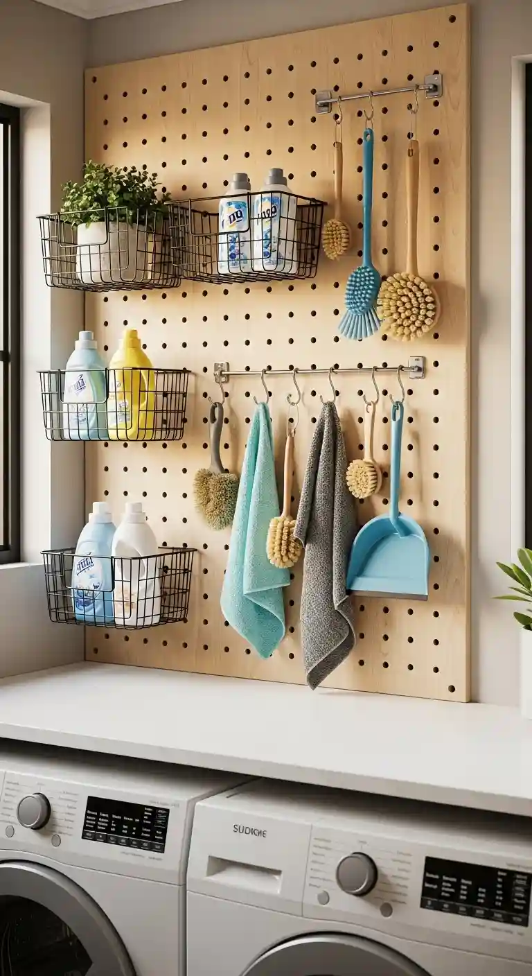 Hang small baskets, cleaning brushes, clothespins, or lint rollers for easy access.