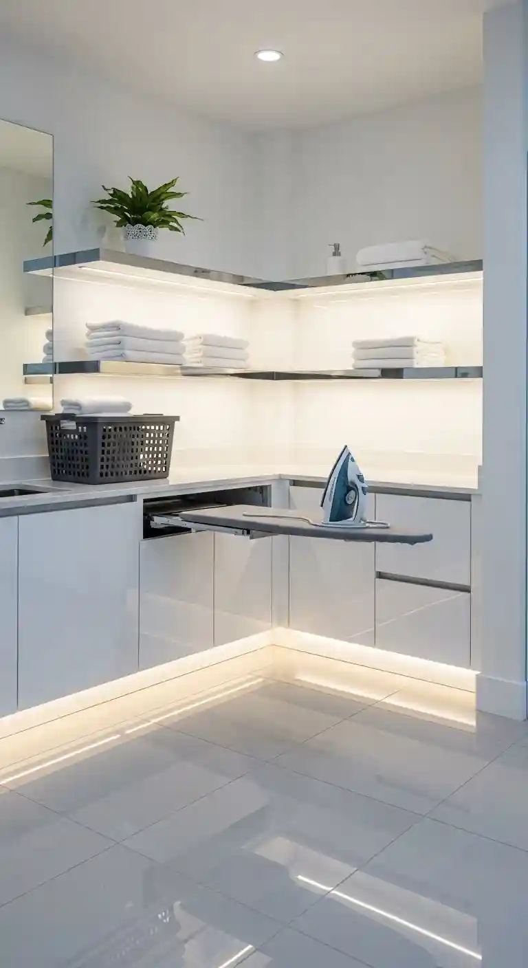 Soft white light creates a clean, airy vibe that makes your laundry zone inviting.