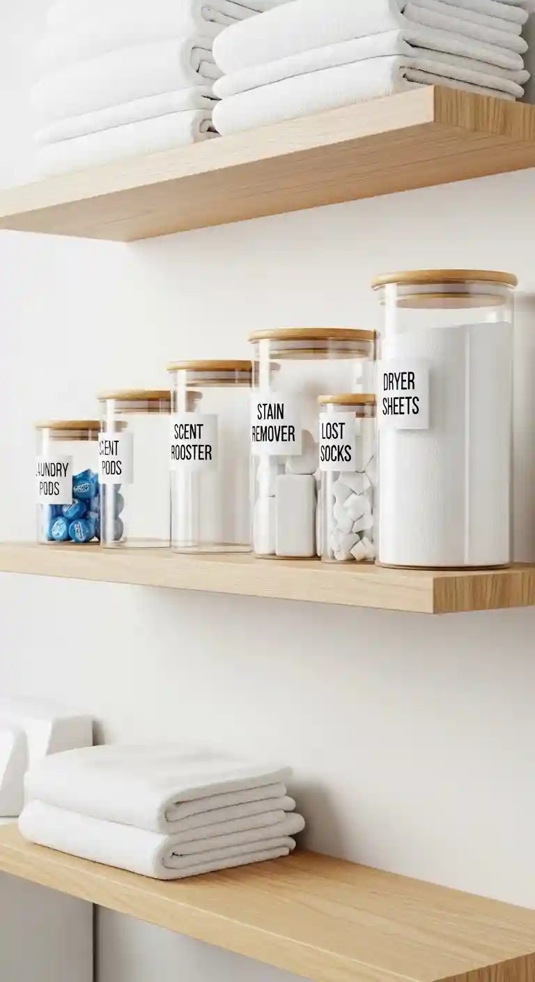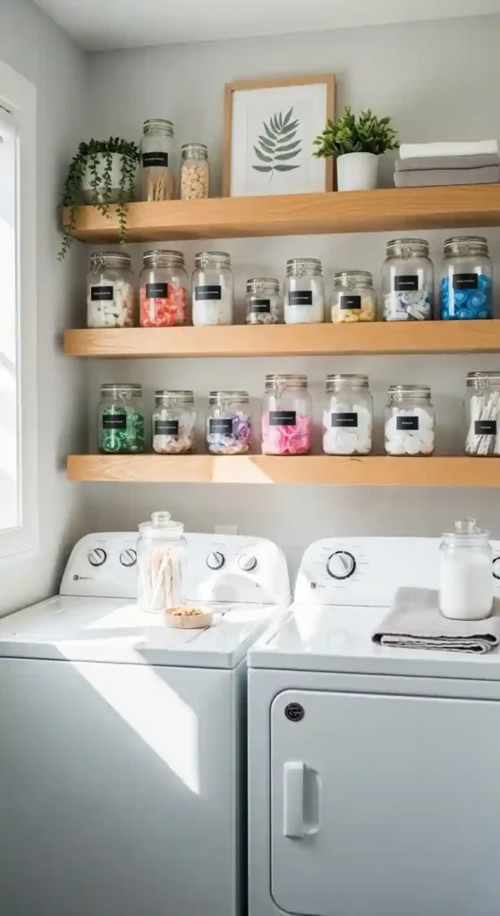Transferring detergents and supplies into matching jars gives a boutique look.