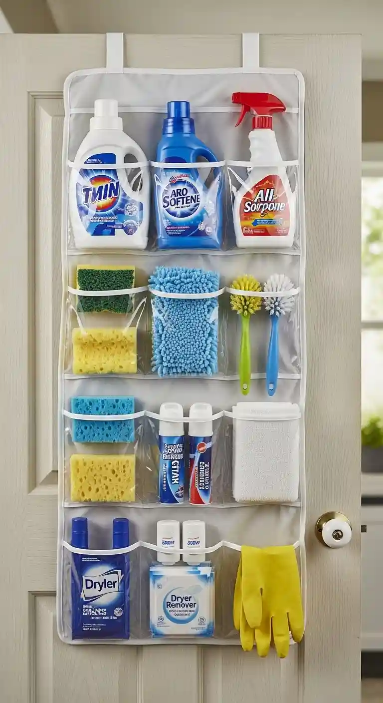 Install slim racks or baskets to hold detergents, brushes, or clothespins.
