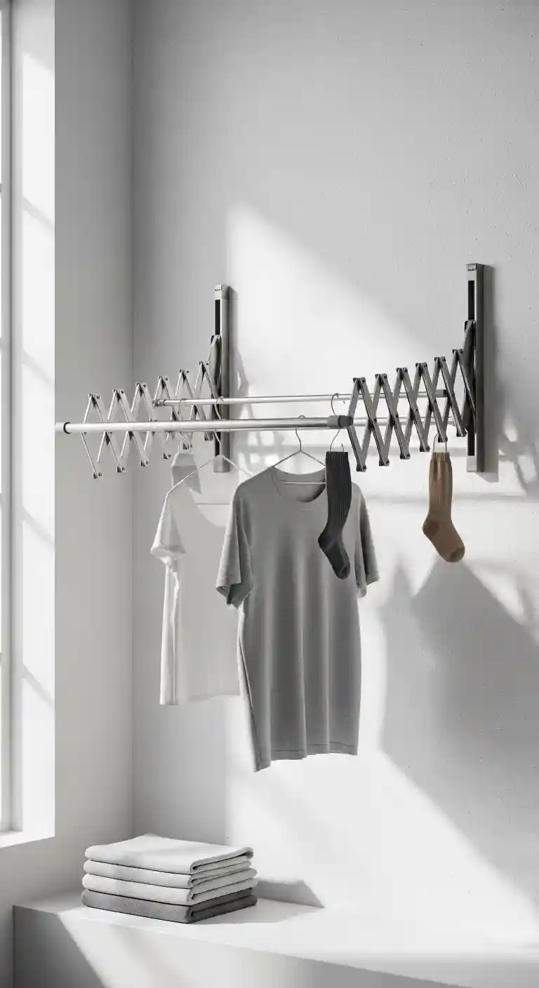 A foldable, wall-mounted drying rack is perfect for air-drying delicate items in compact laundry rooms.