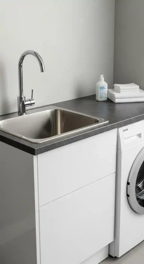 Integrating one beside your washer allows for handwashing delicate fabrics or quick cleanups.