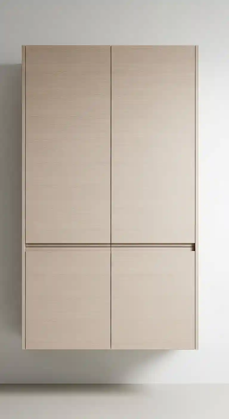 It maintains a clean profile while hiding detergents, hampers, and tools behind sleek surfaces.