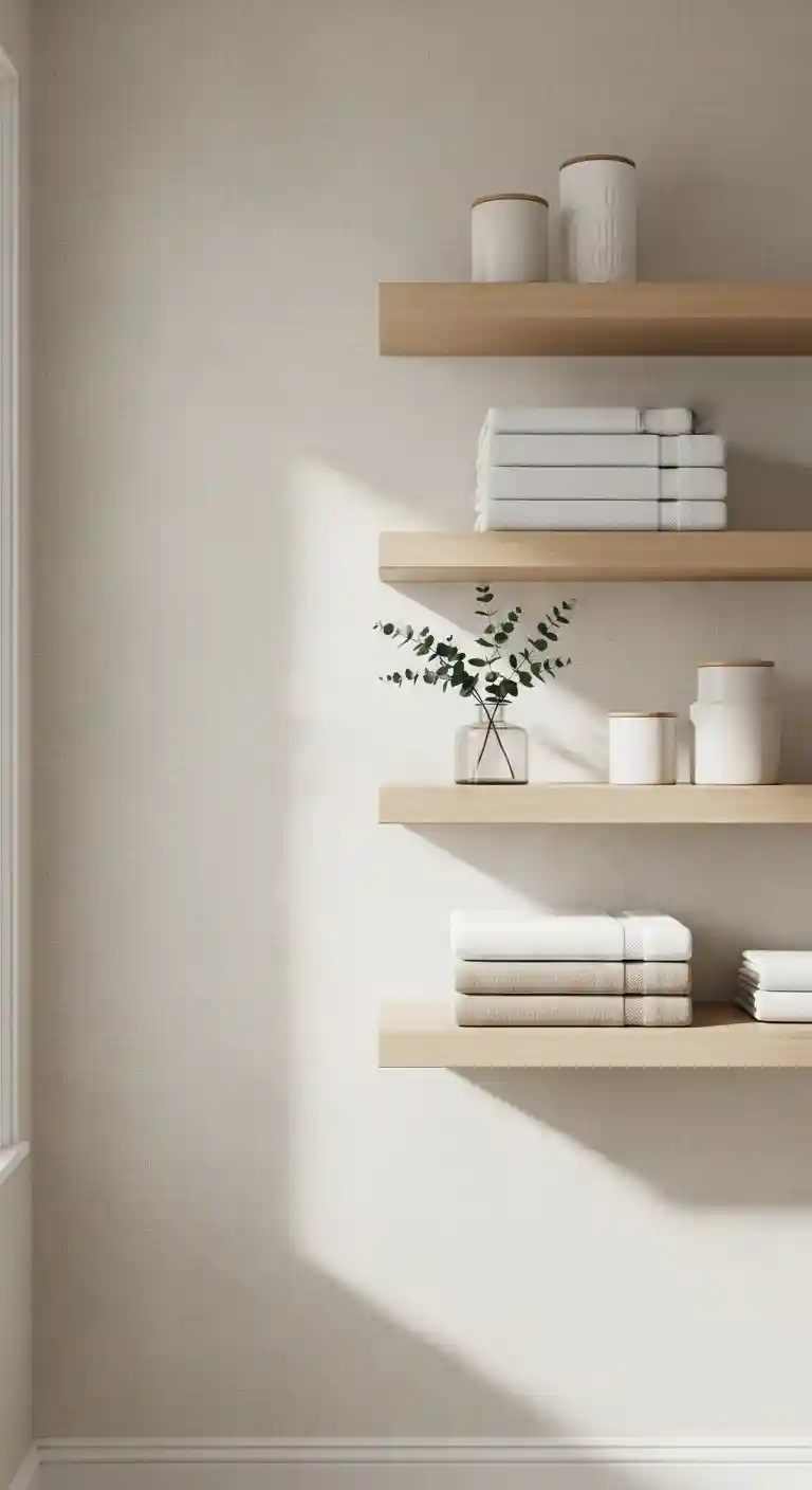 Wood shelves, baskets, or even paneling bring texture and organic warmth.