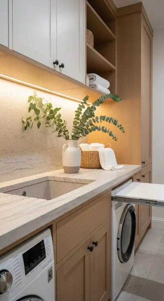 Your laundry zone becomes a calm retreat instead of a chore space.