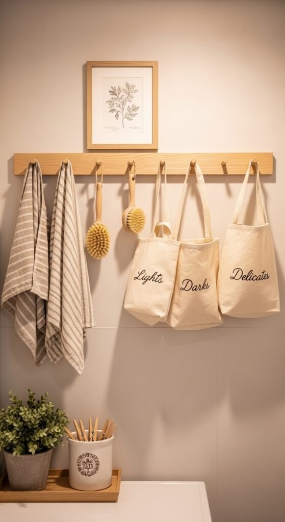 Install pull-out baskets for sorting whites and colors, or hang a small drying rack inside a cabinet.
